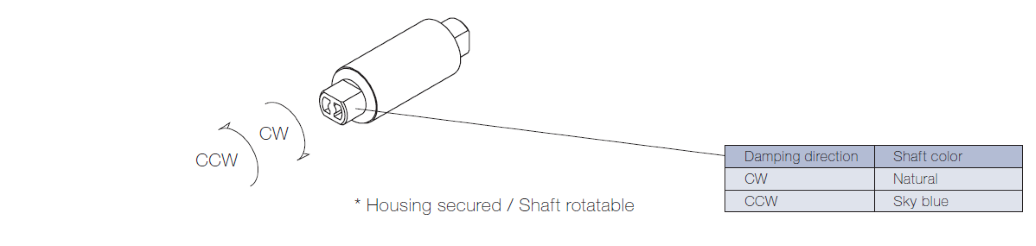 产品名称 扭矩值 [N⋅m] (lbf⋅in) 阻尼方向 轴颜色