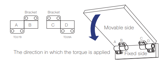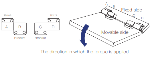 将TD27/28与选配支架组合使用,可将本产品作为旋转阻尼铰链使用。