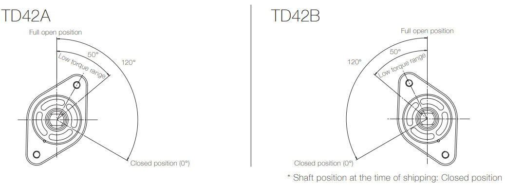 Opening angle of TD42 rotary damper