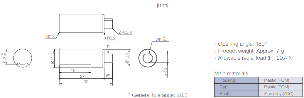 • 最小的垂直安装用阻尼器(Ø11 mm)